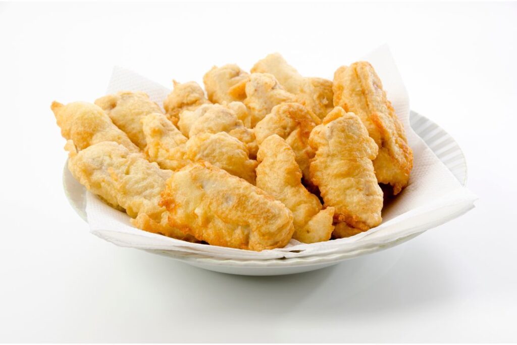 本土の天ぷらとは全く違う、衣が厚くてもちもちした食感が特徴。魚や野菜、もずくなど種類も豊富で、1個100円前後とリーズナブル。地元の人は何もつけずにそのまま食べますが、ウスターソースをかけても美味しいですよ。