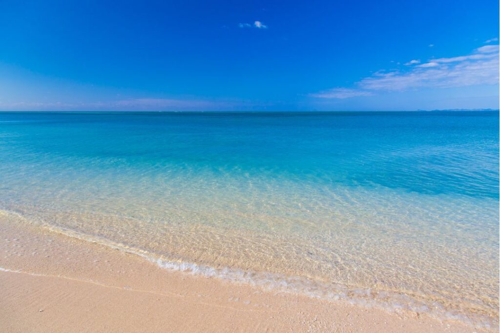 沖縄のビーチの砂は、サンゴが砕けてできた真っ白な砂。波打ち際を裸足で歩くとサラサラで気持ちいいんです。砂遊びはもちろん、貝殻拾いやヤドカリ探しなど、子どもたちは何時間でも夢中になって遊べます。