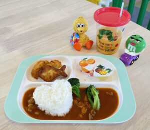- 子ども用食具やエプロンの配慮有り