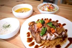 子ども向けには、可愛い見た目とやさしい味付けのキッズメニューが2種類用意されています。見た目も楽しく、食べる前からワクワクできる工夫がされているので、子どもも大喜び。ナチュラルな雰囲気の店内で、安心して子どもと一緒に食事を楽しめます。