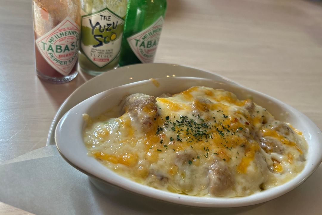 大人には辛さを加えるのもおすすめで、タバスコを3種類ご用意してくれました!私は気になる『YUZUSCO(ゆずすこ)』をチョイス!柚子の爽やかな香りを楽しみました。