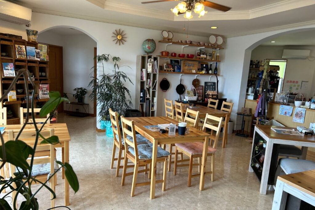 木のぬくもりを感じる温かい雰囲気と、恩納村ののどかな風景を感じられるガーデンに癒されました。